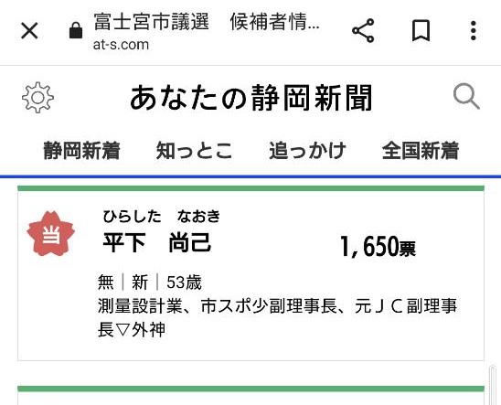 富士宮市議会議員選挙にて当選させていただきました